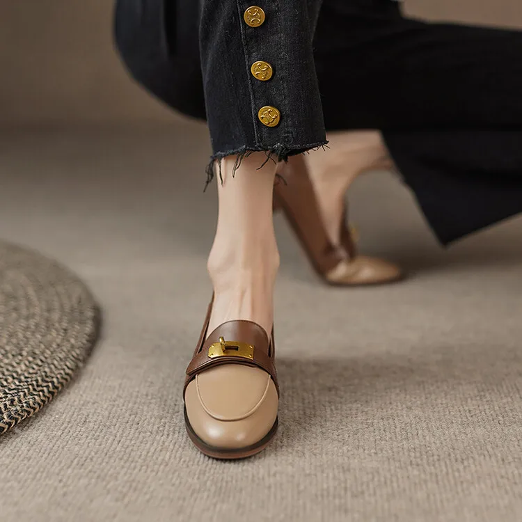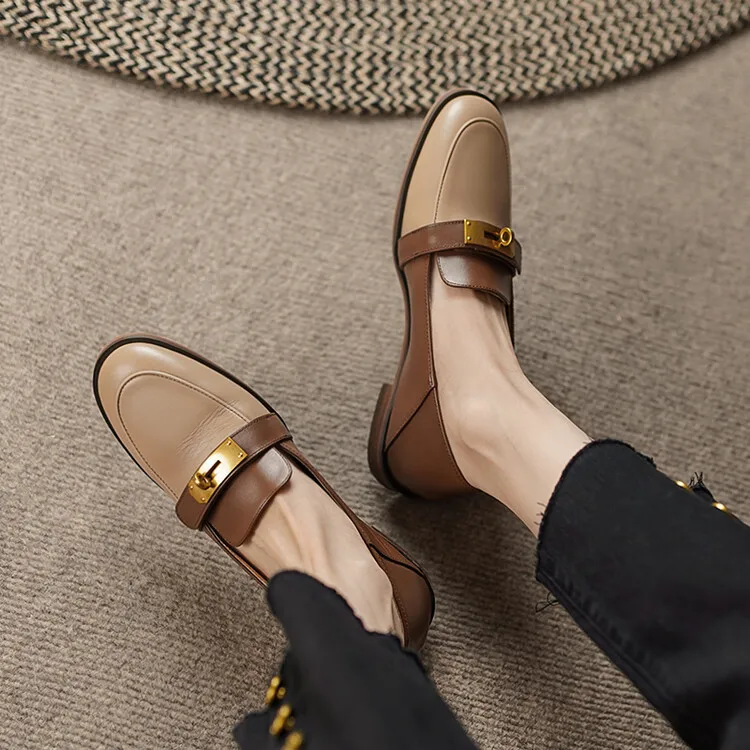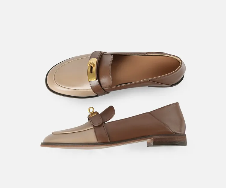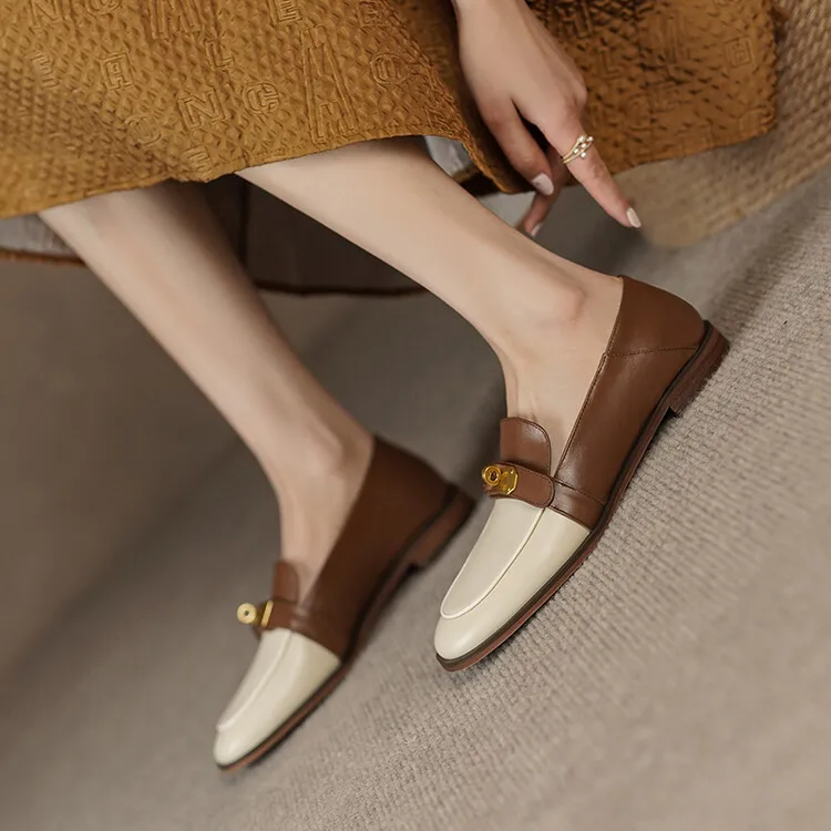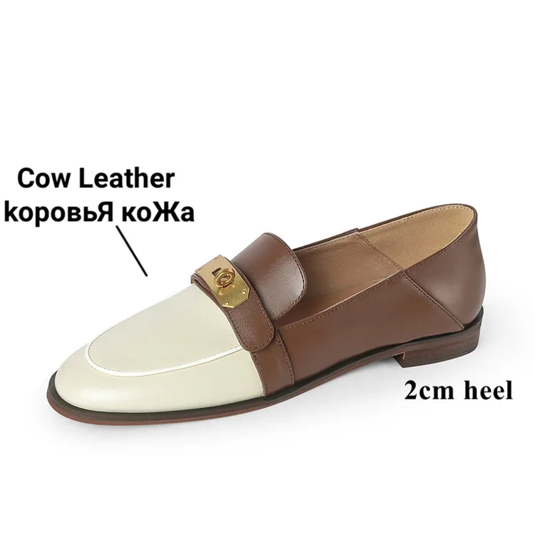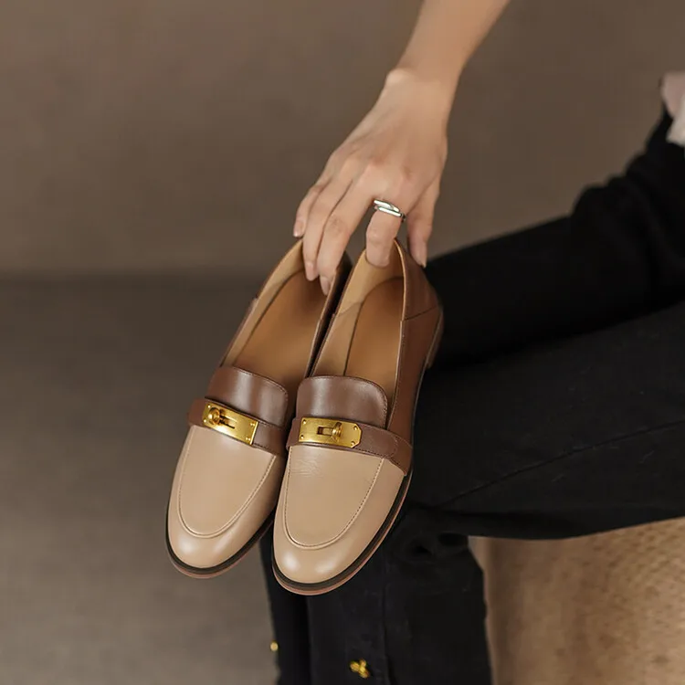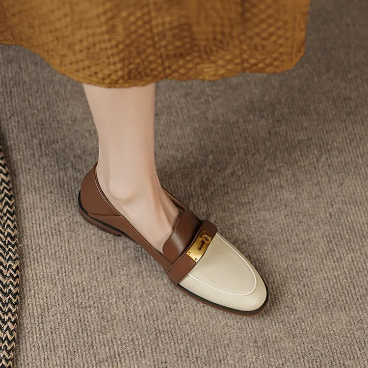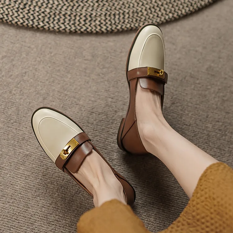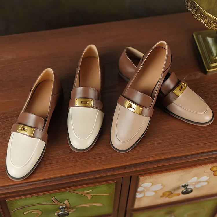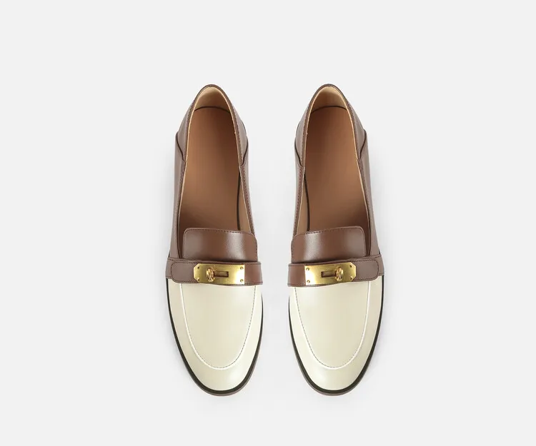 Blapunka Women Genuine Leather Loafers Designer Metal Lock Mix-color Slip-on Flat Shoe Ladies Spring Autumn Casual Comfort Flats