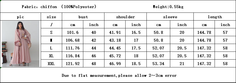 Chiffon Long Muslim Embroidered Crew Neck Dress With Headscarf