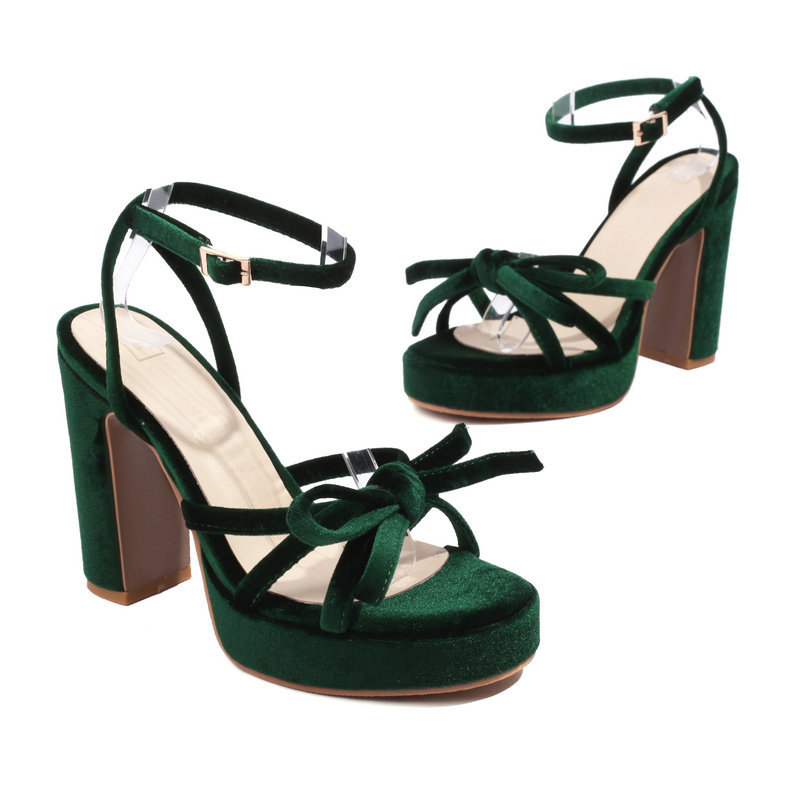 French-style Open-toe Block-heel Sandals With A Bow-cutout Strappy Design