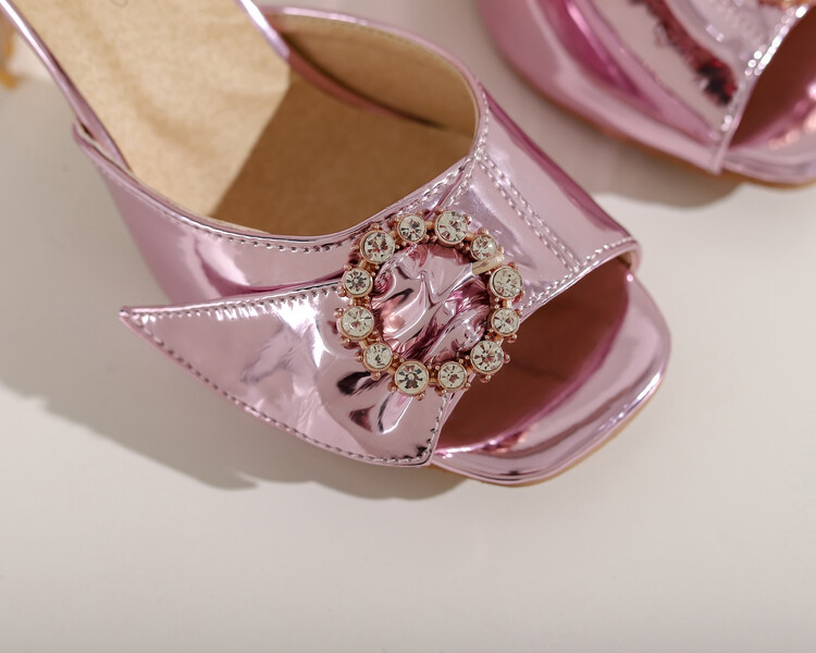 Glitter Patent Leather Rhinestone Strappy Chunky-heeled Sandals