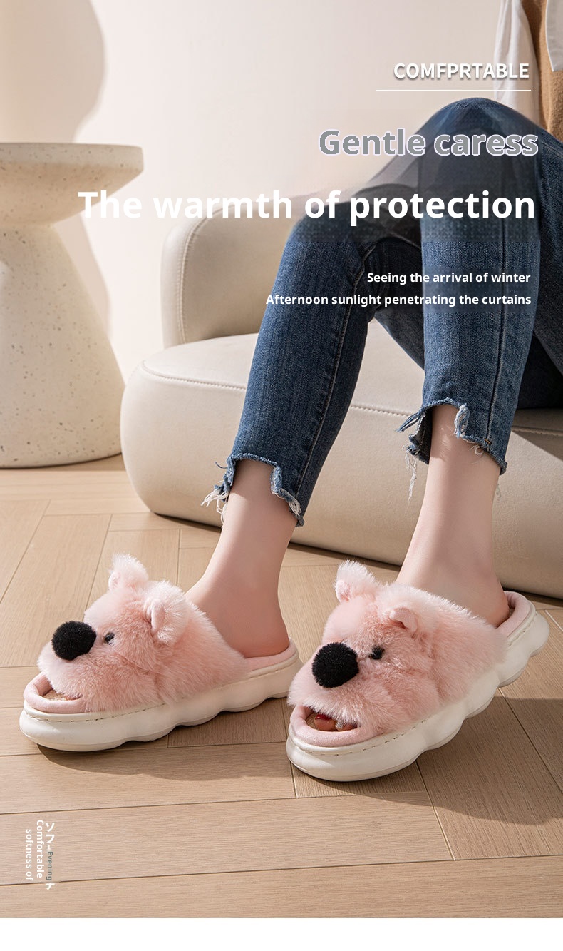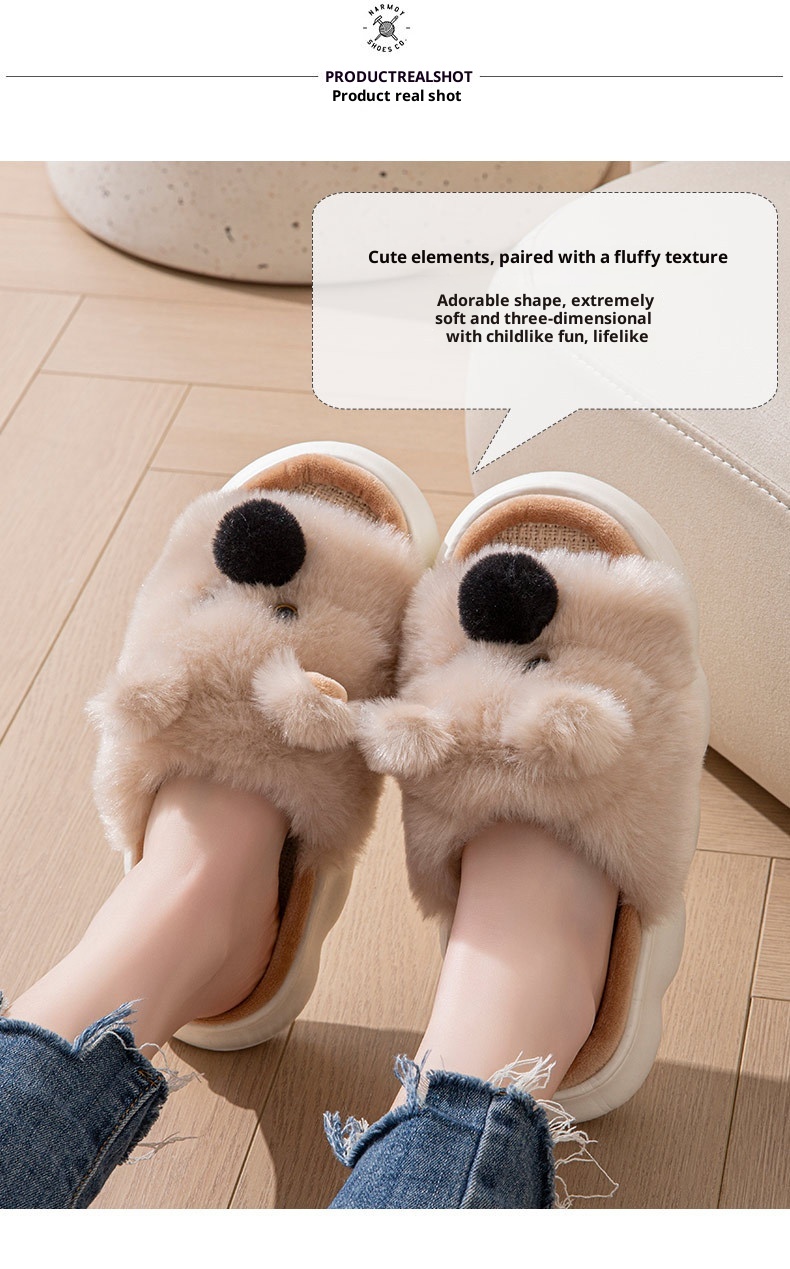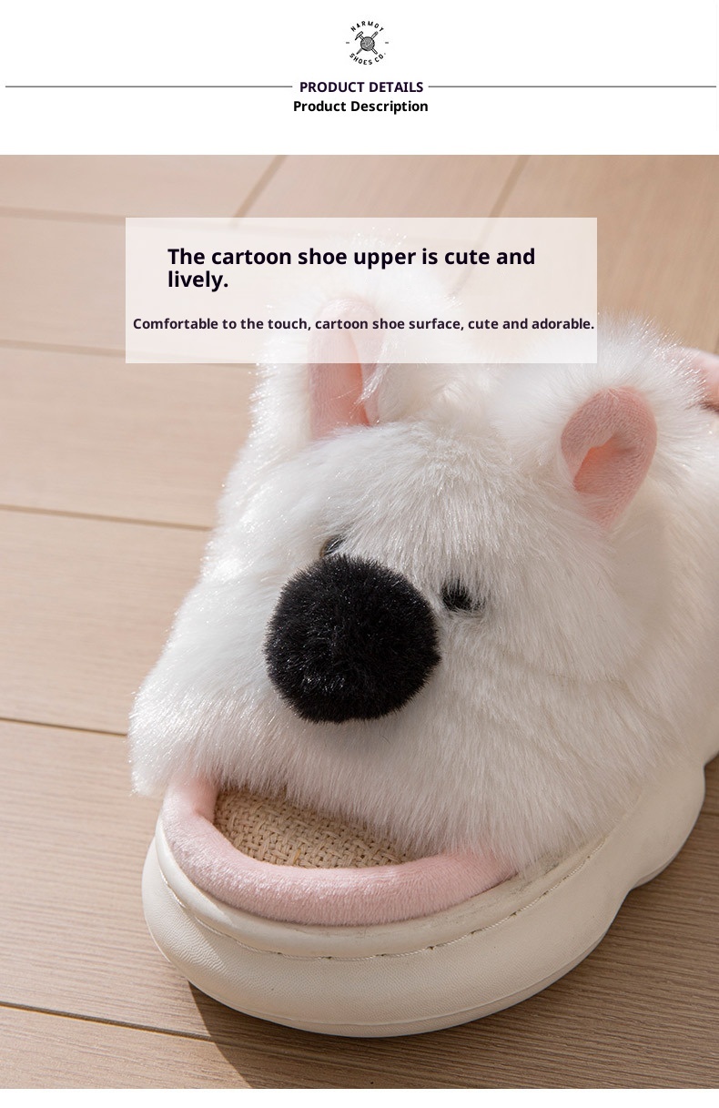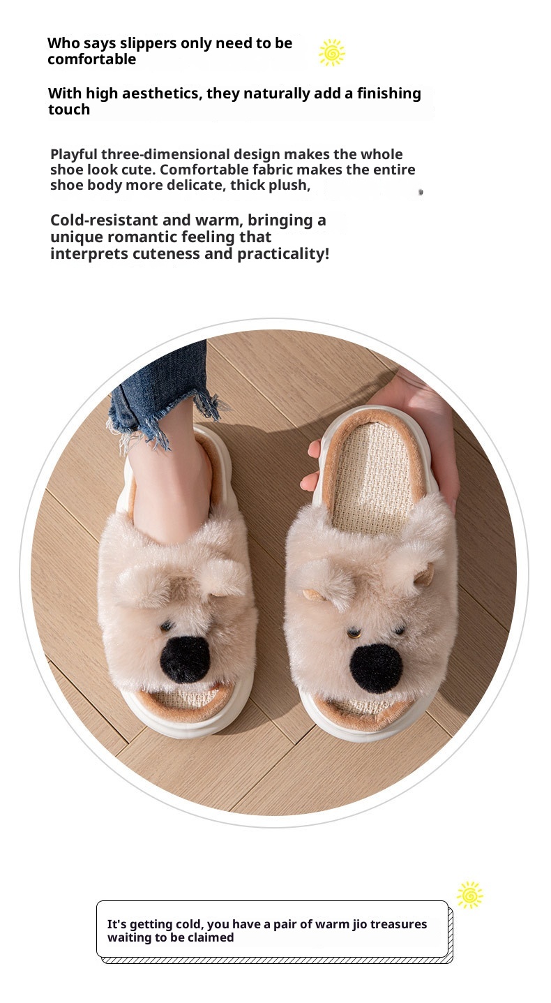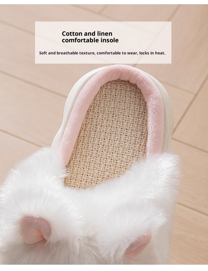 Linen Slippers For Women, Indoor Home Thick Sole Cartoon