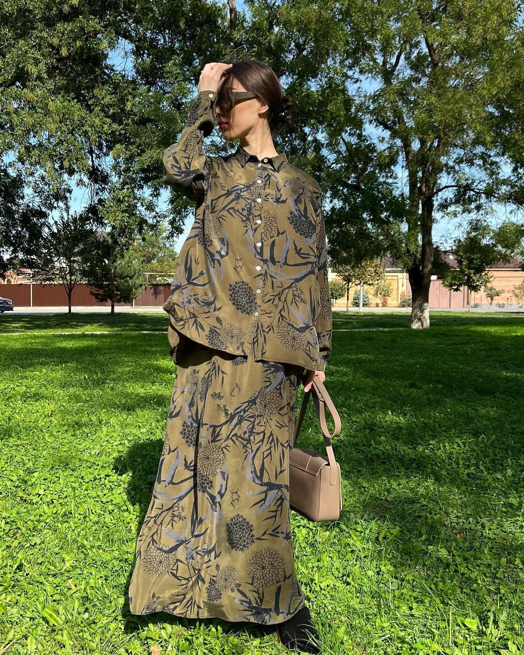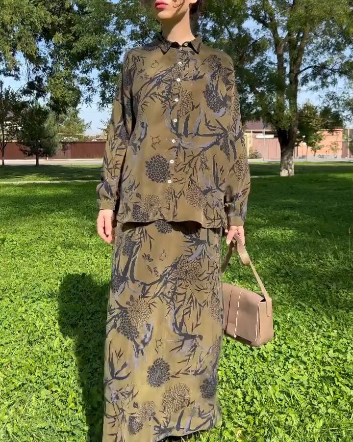Long Sleeve Blouse and Skirt Casual Set for Middle Eastern Arab Women