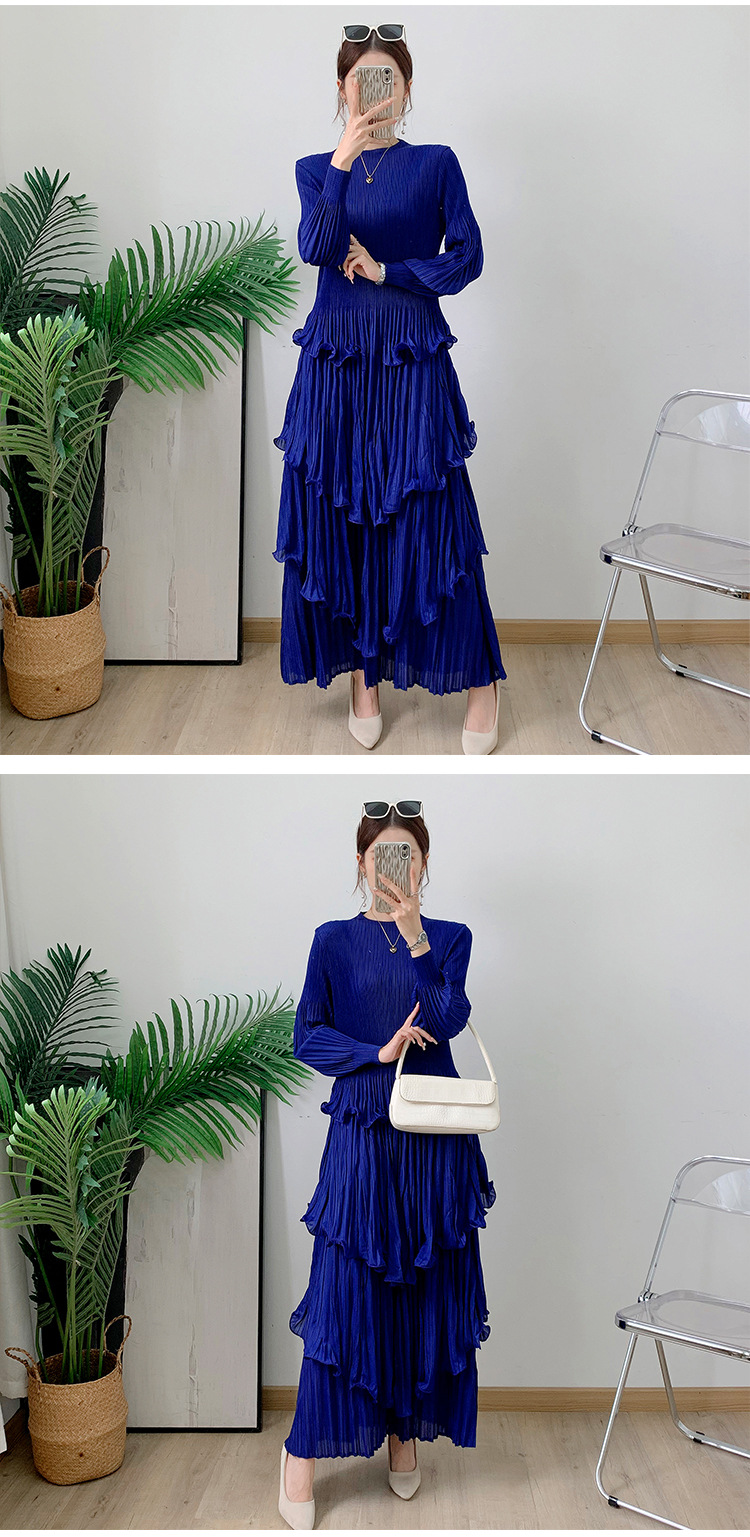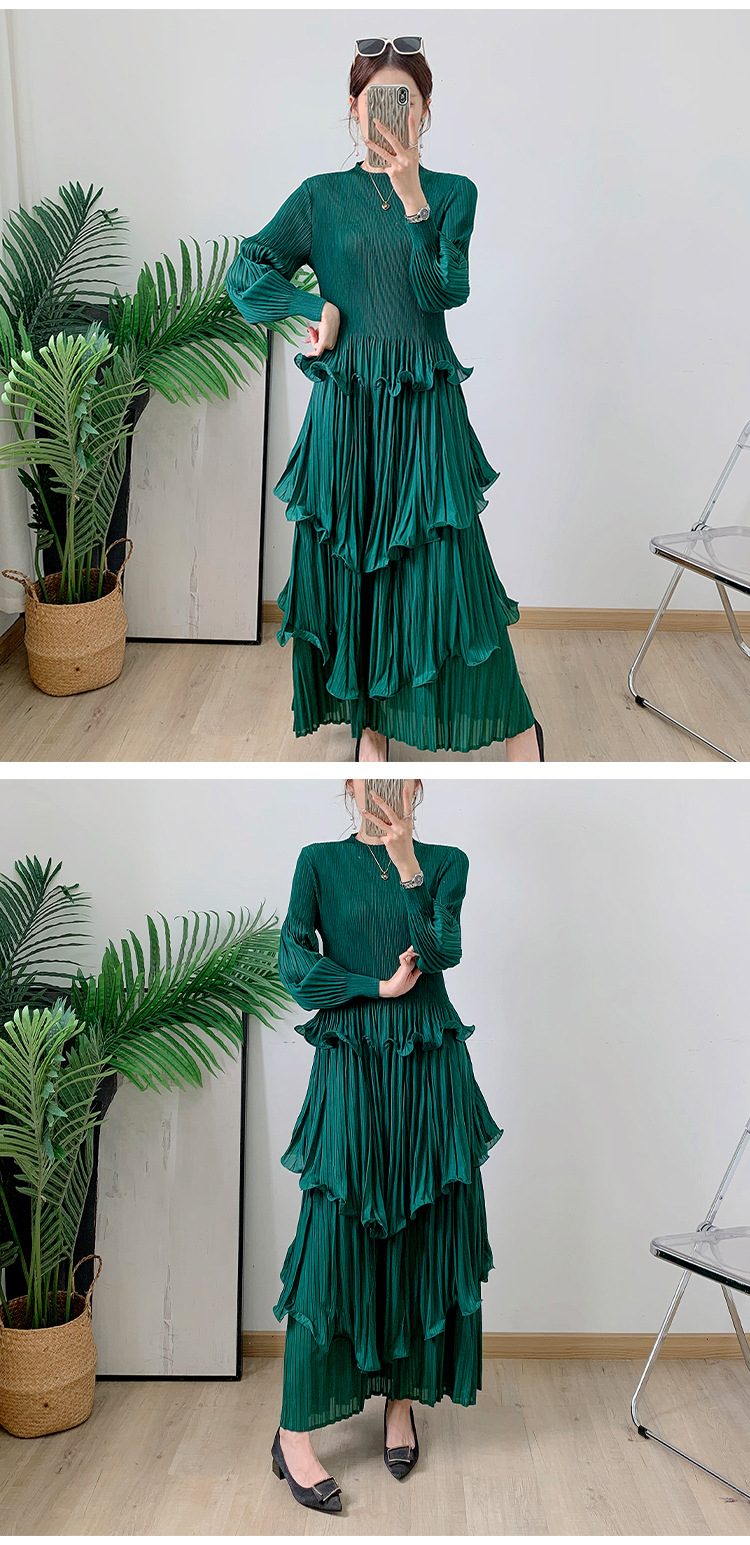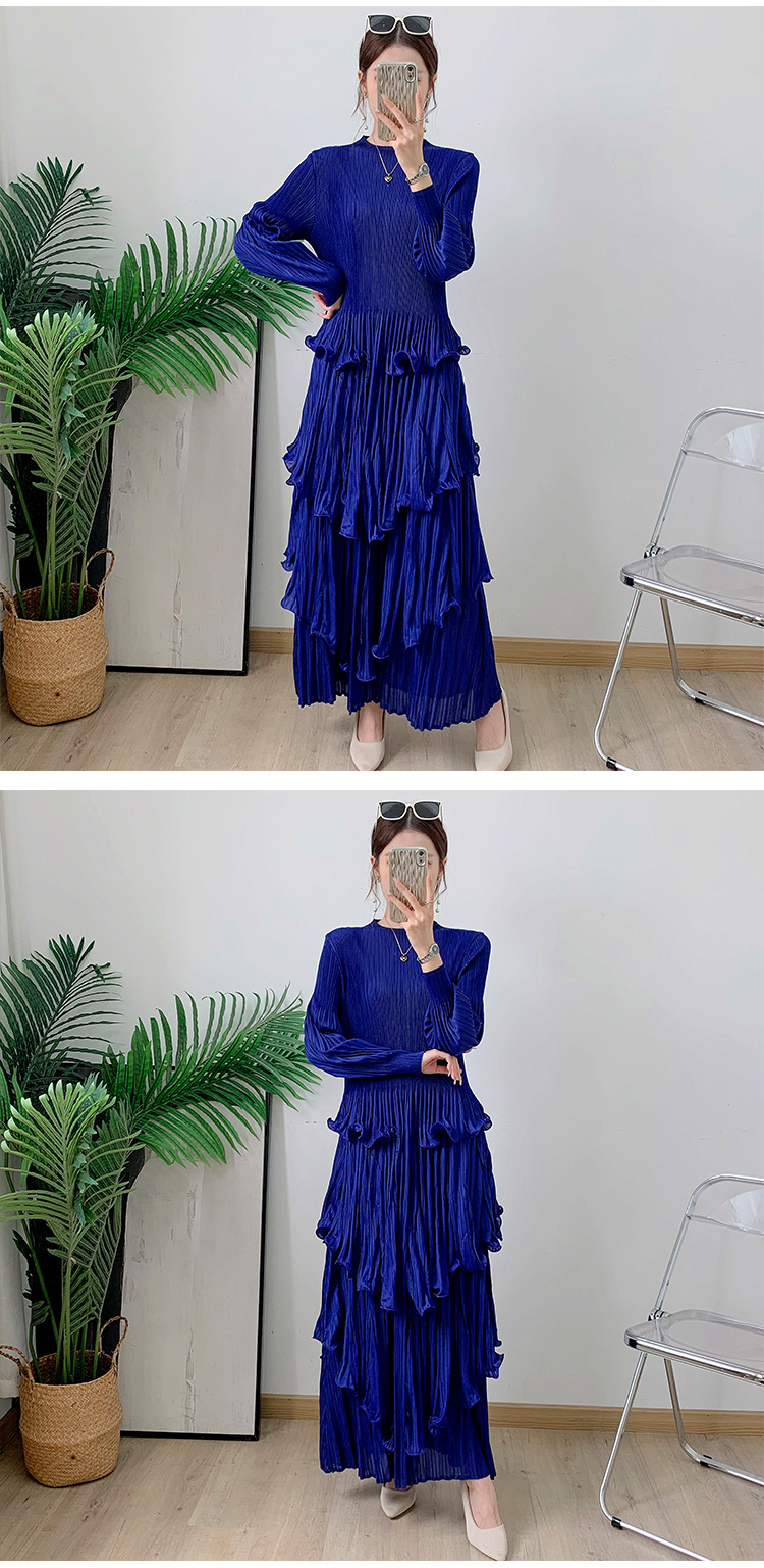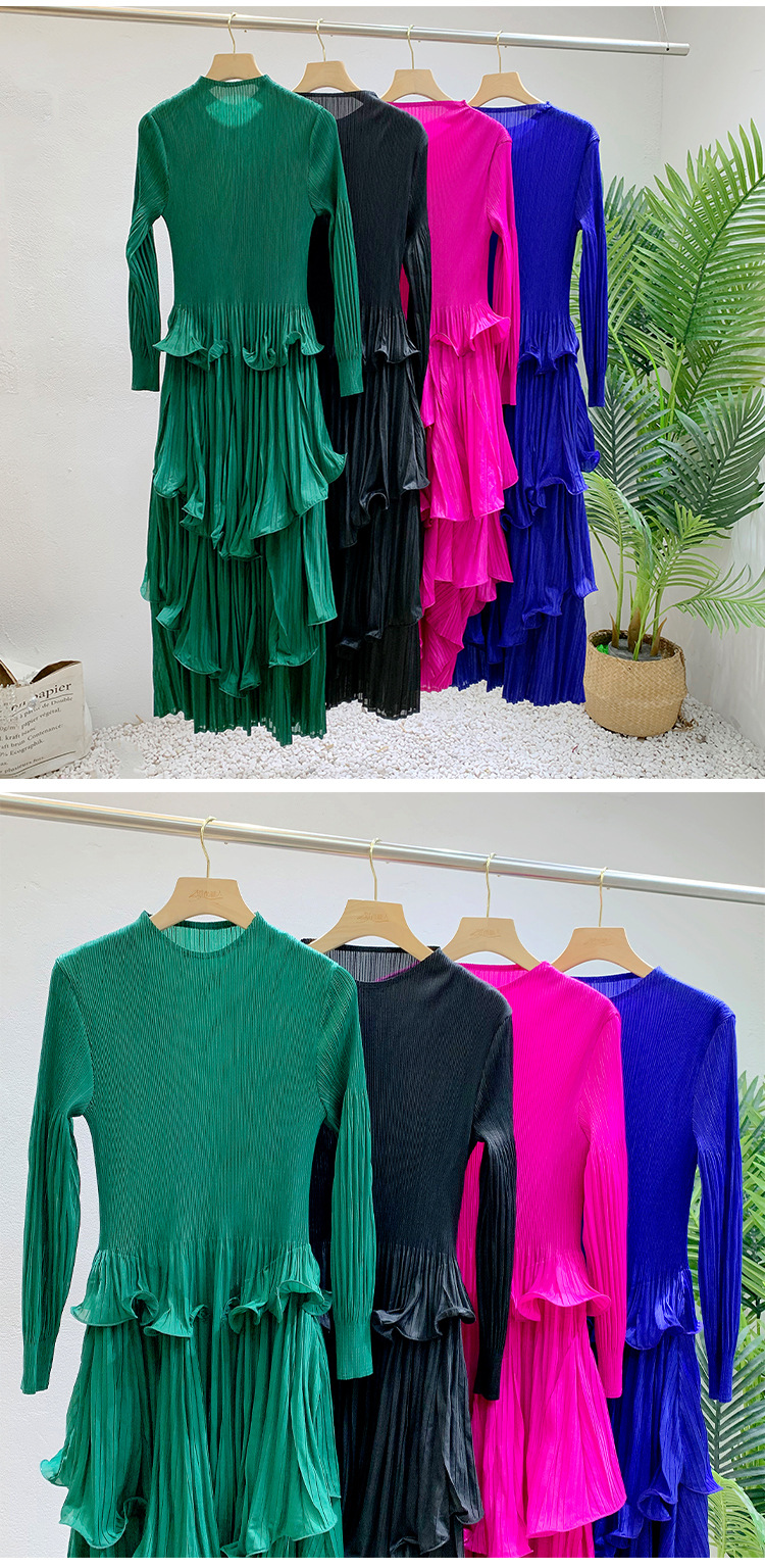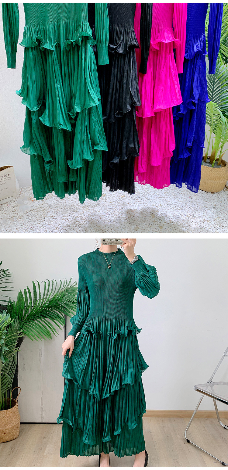 Middle East Long Heavy Industry Ear Edge Drawn Fold Strap Belt Long Dress Stand Collar Large Women's Wear