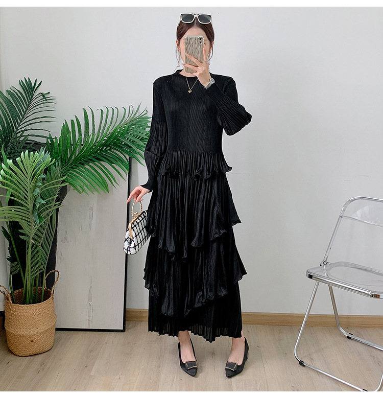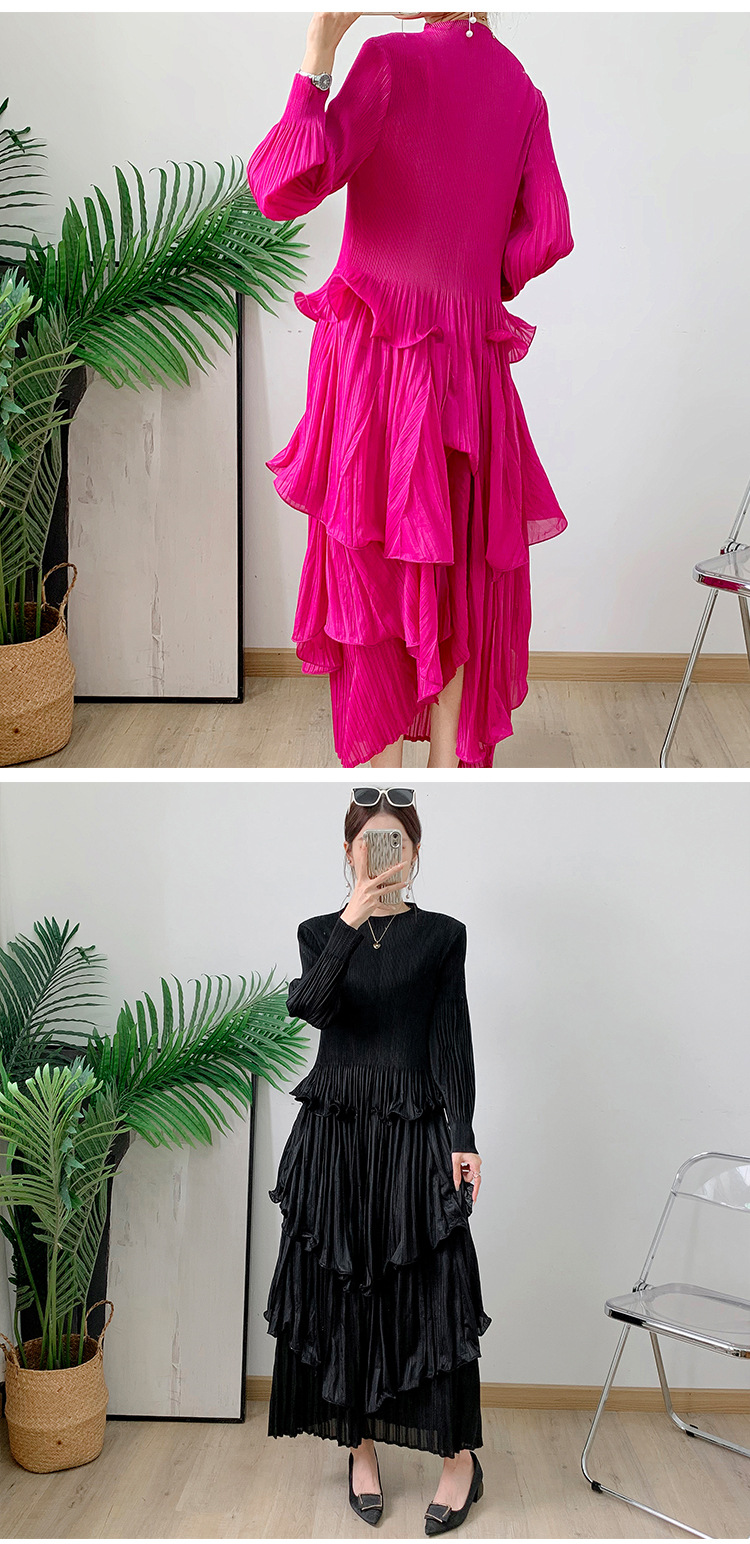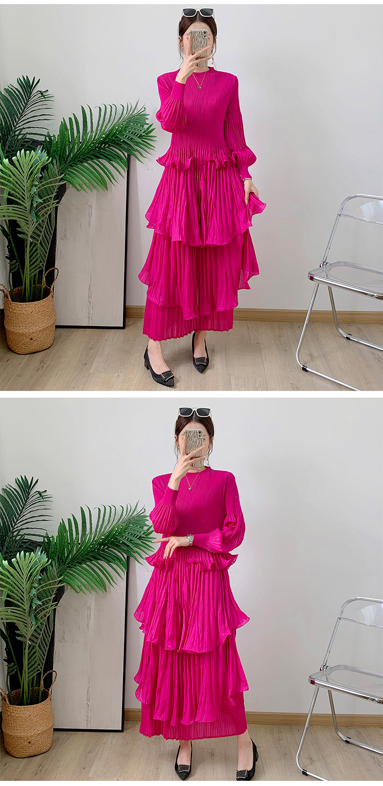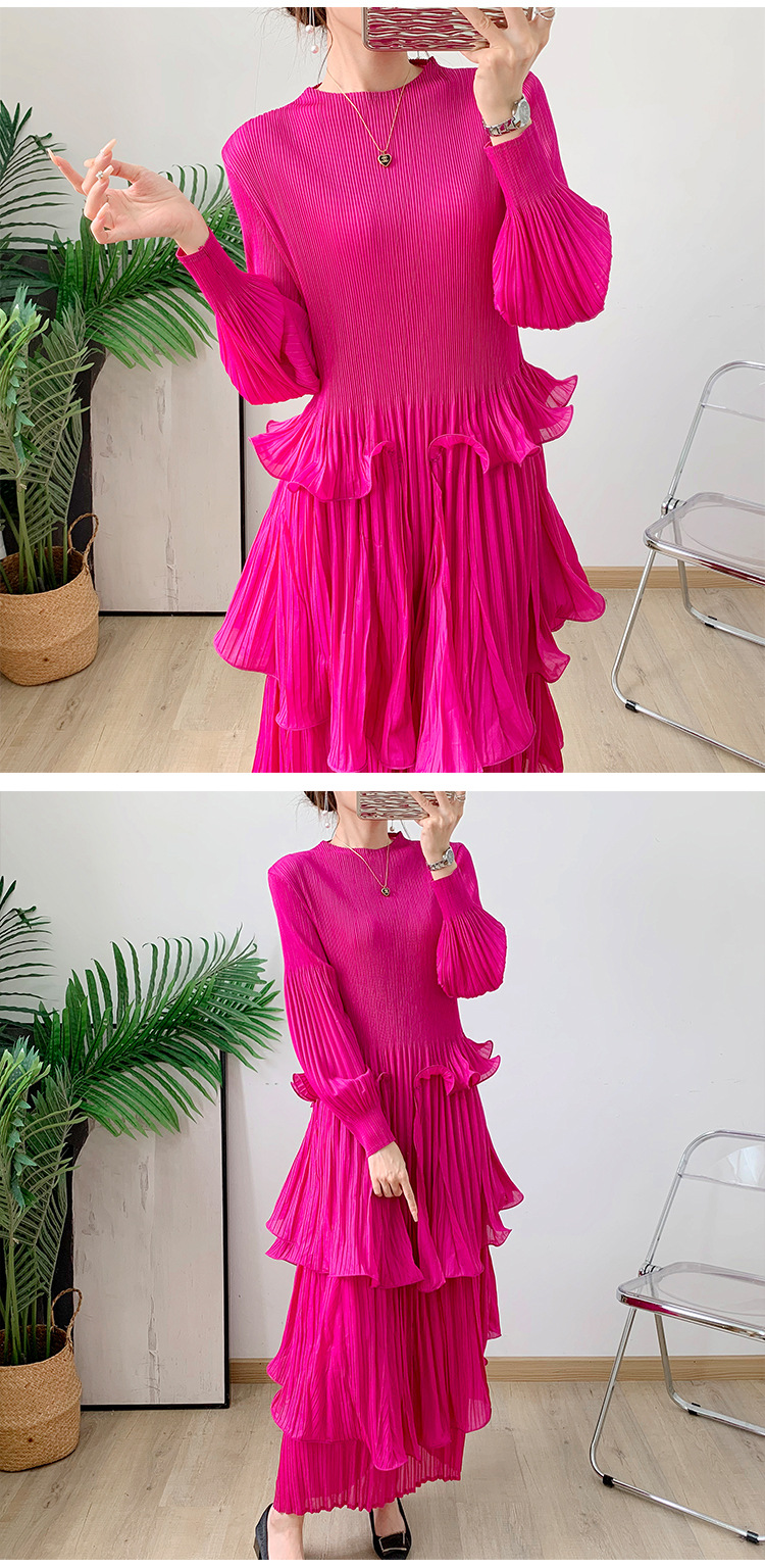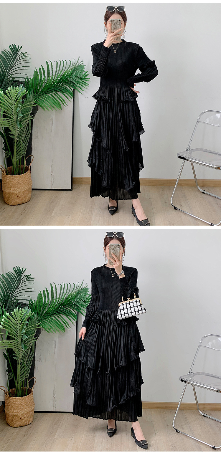 Middle East Long Heavy Industry Ear Edge Drawn Fold Strap Belt Long Dress Stand Collar Large Women's Wear
