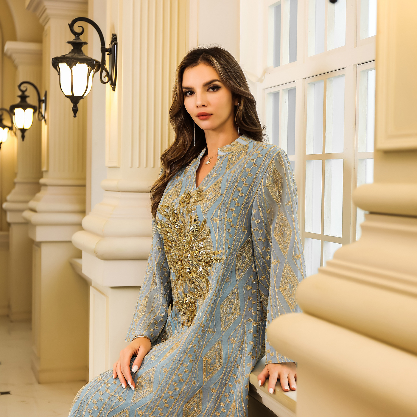 Muslim Middle Eastern Long Robe Women's Dubai Turkish Abaya Sequined Maxi Dress