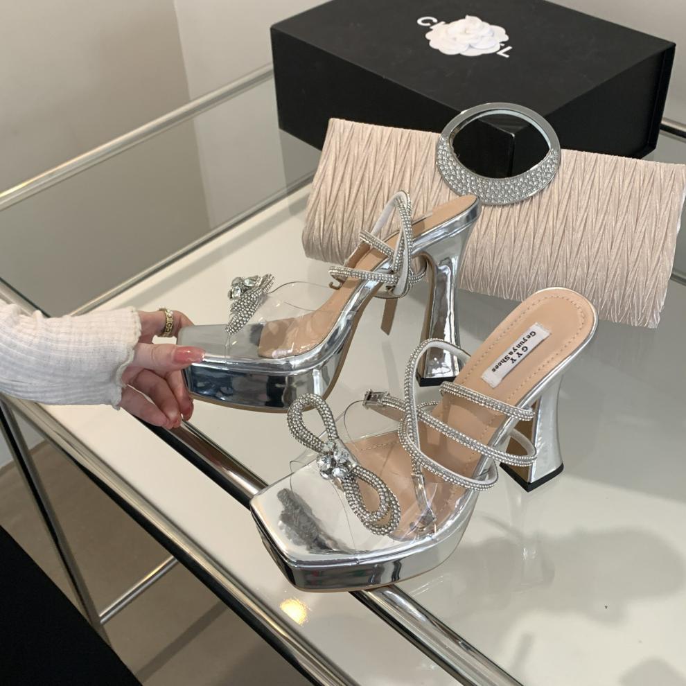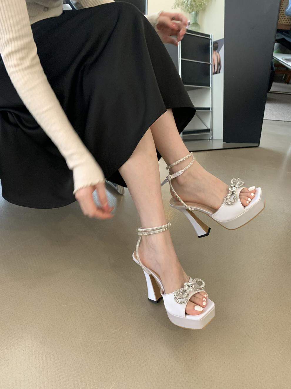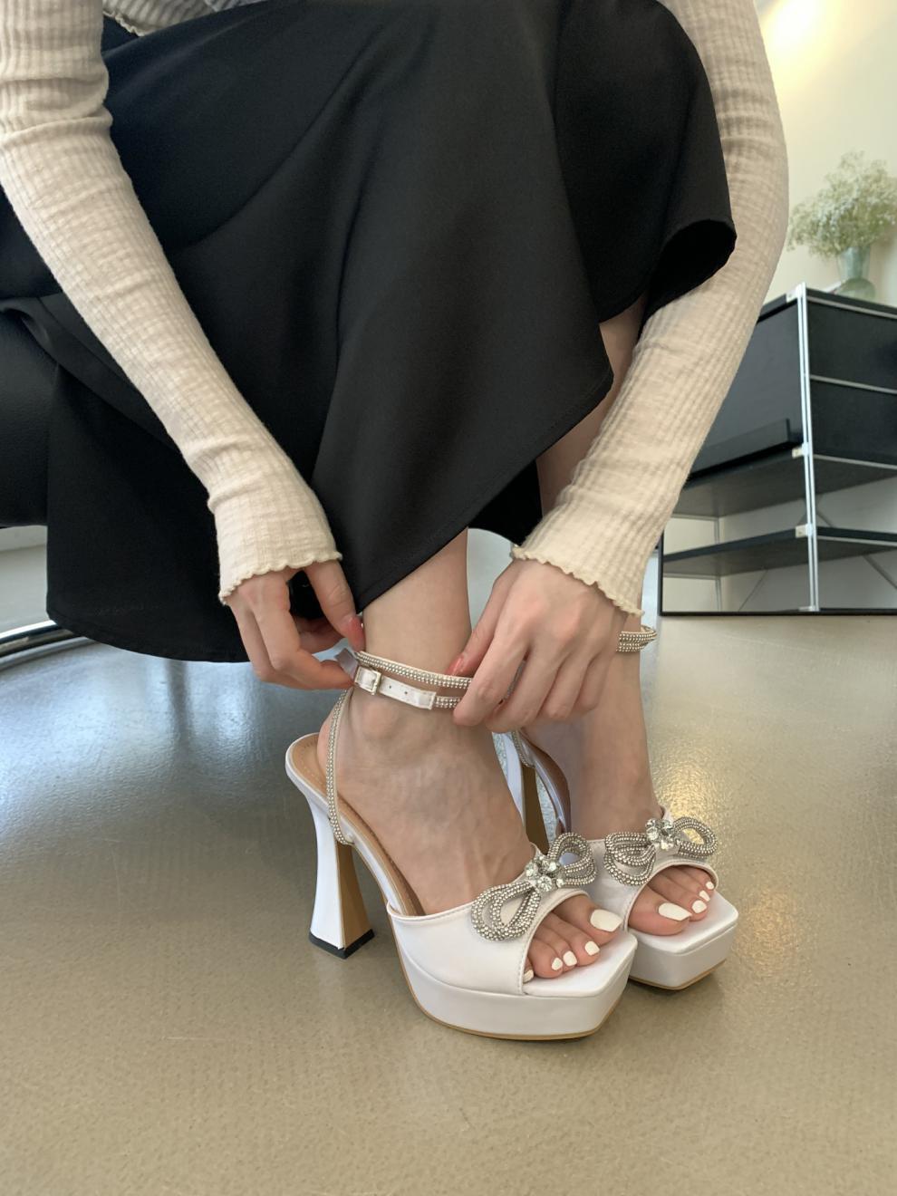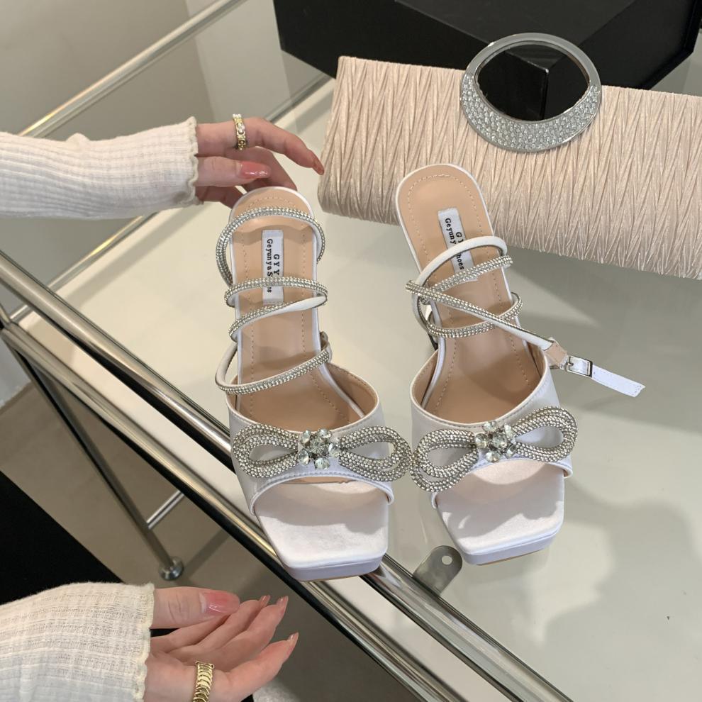 Platform Rhinestone Bow High-heeled Sandals