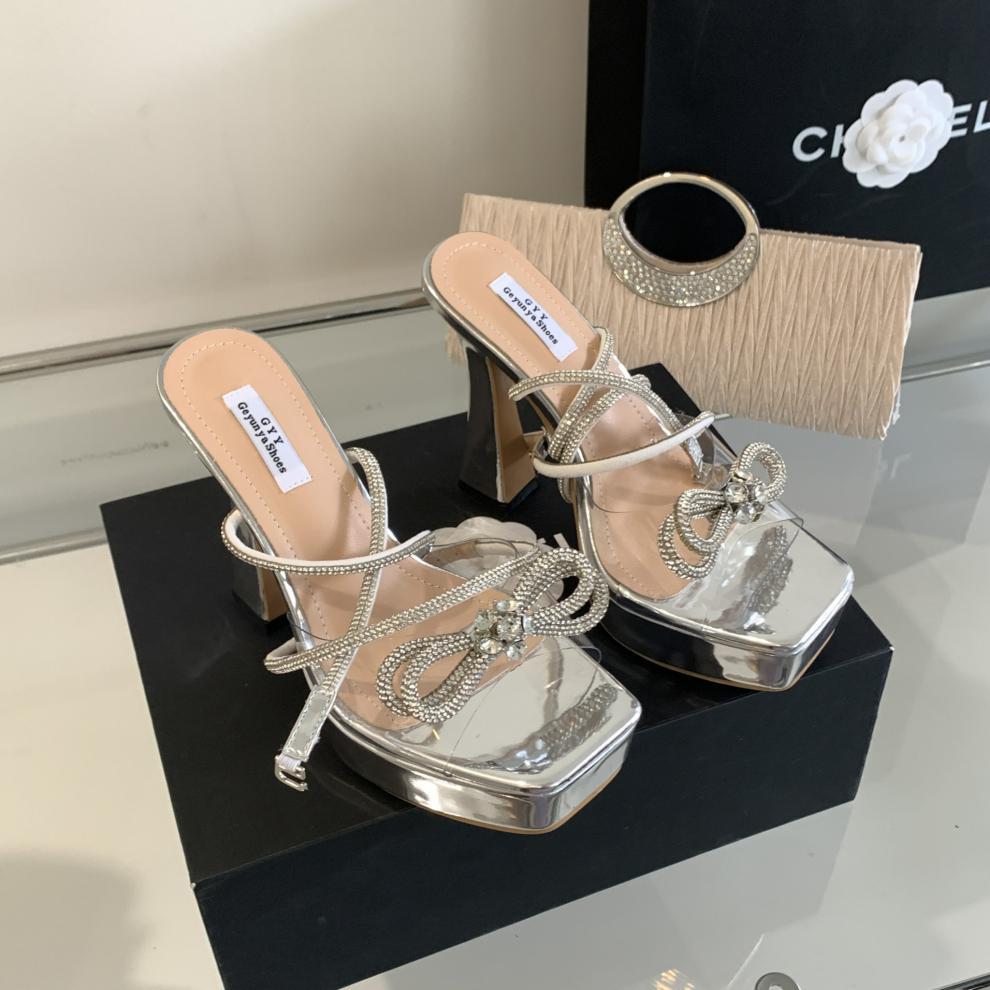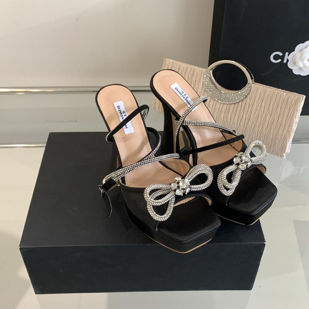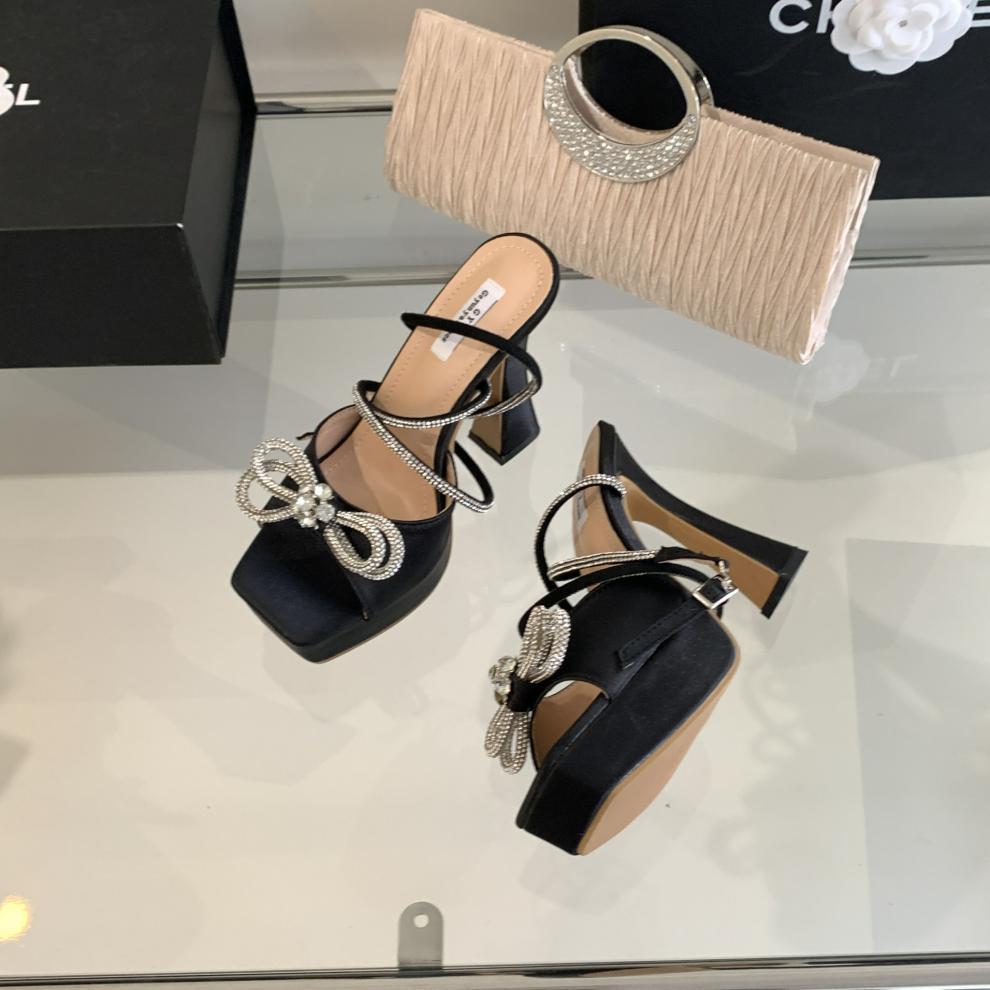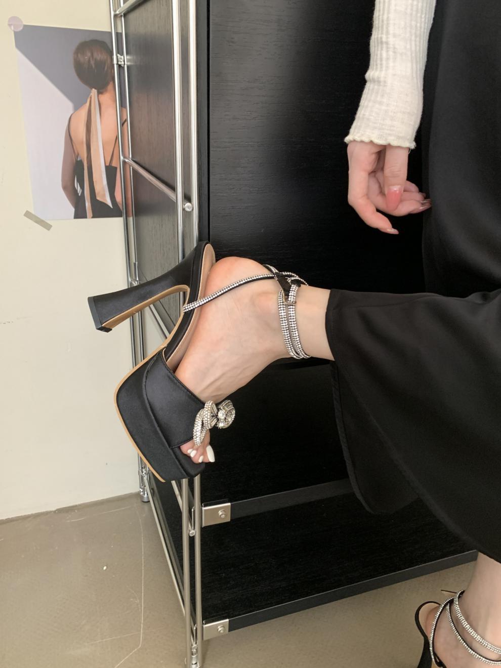 Platform Rhinestone Bow High-heeled Sandals