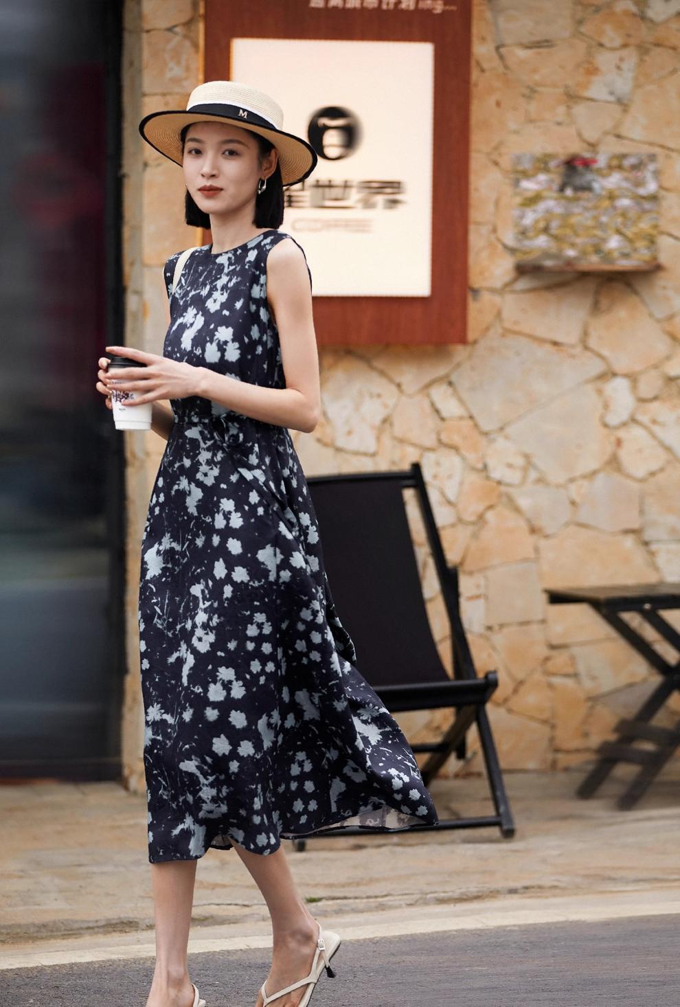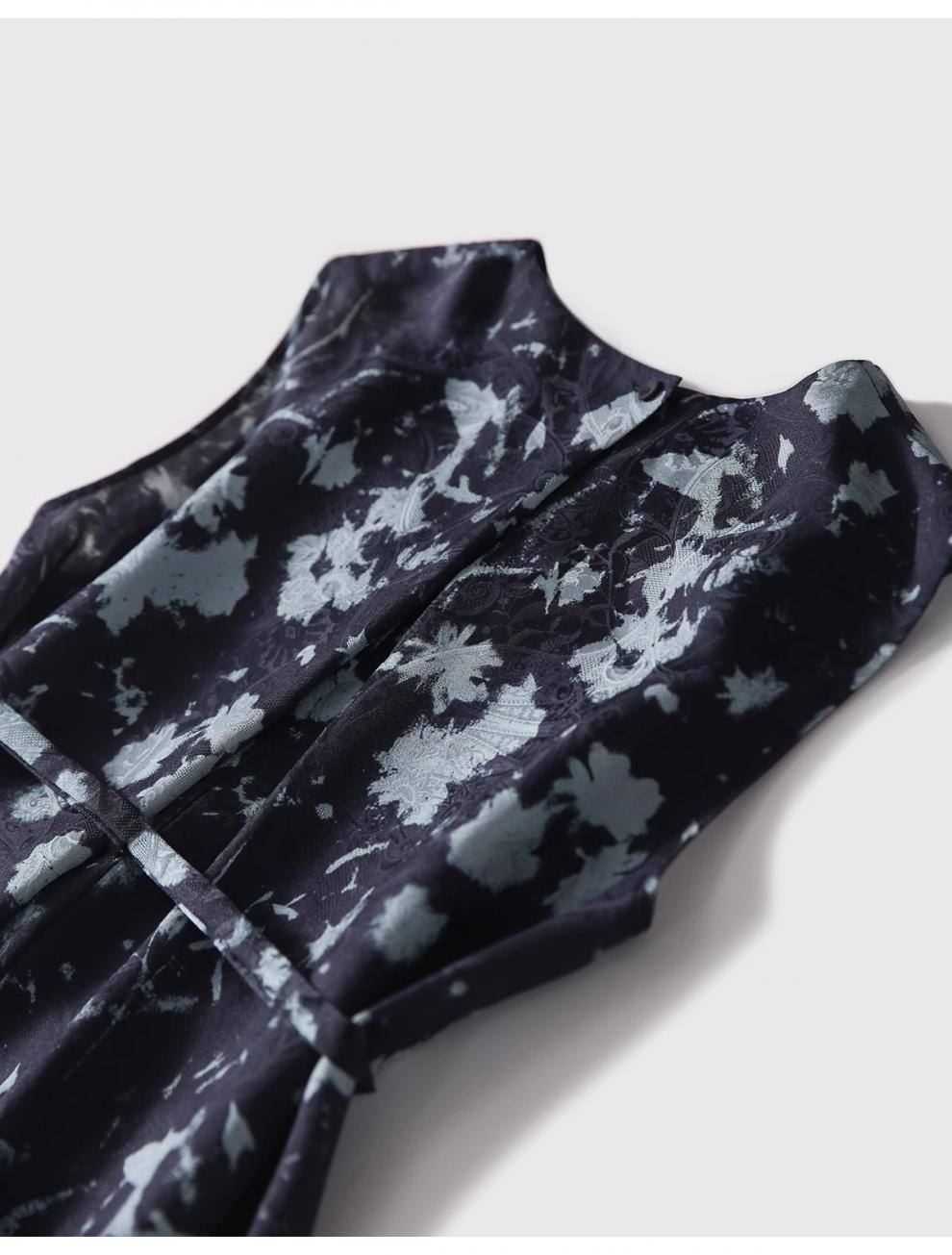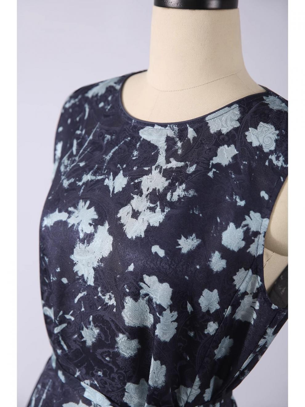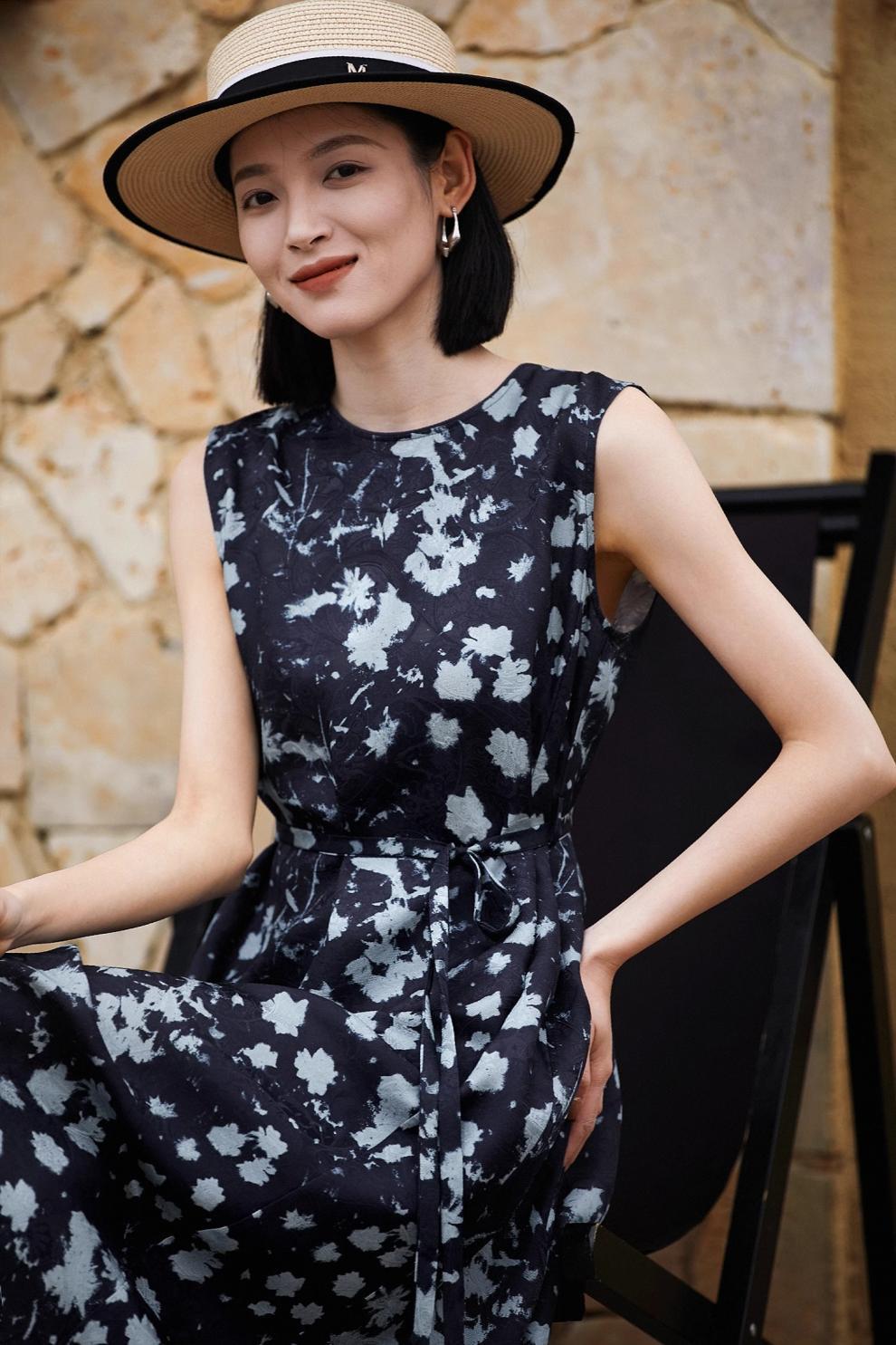 Printed Waist-Cinching Sleeveless Dress For Women