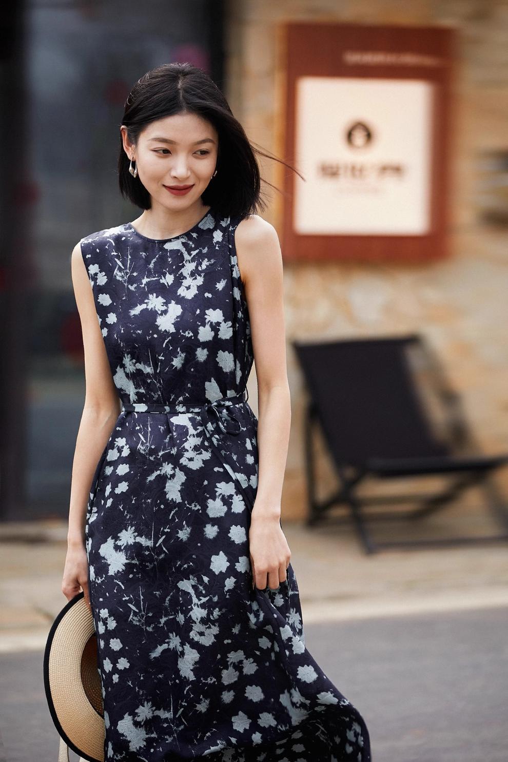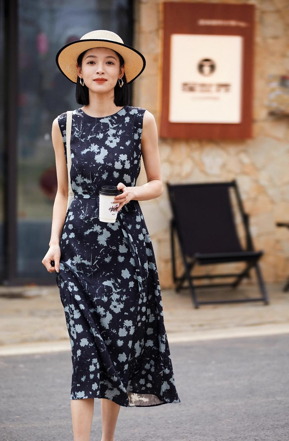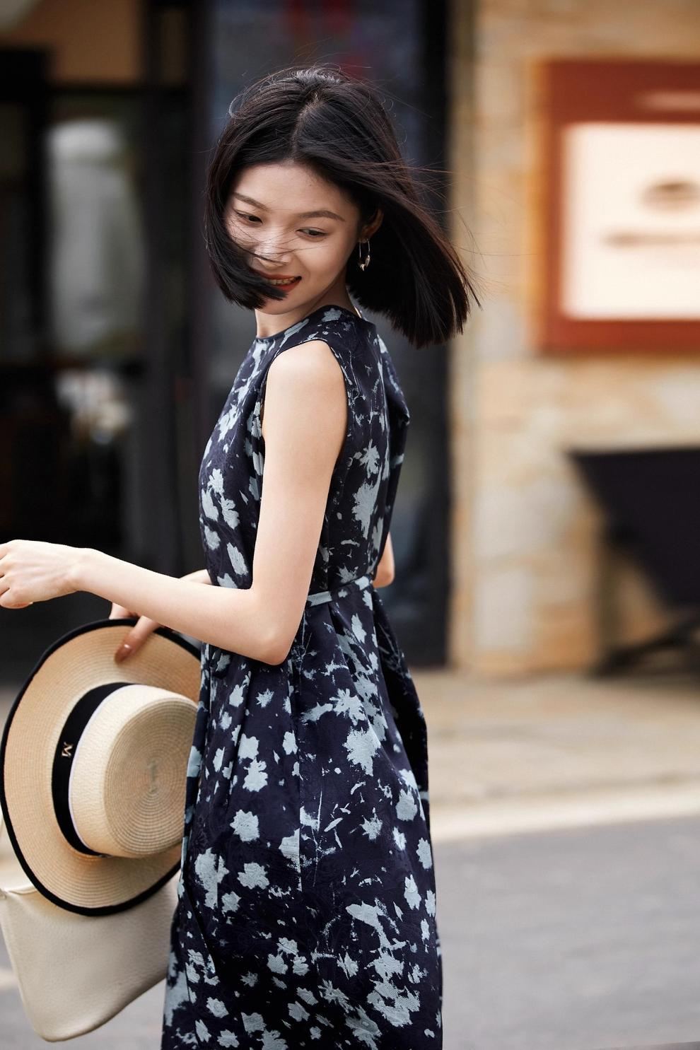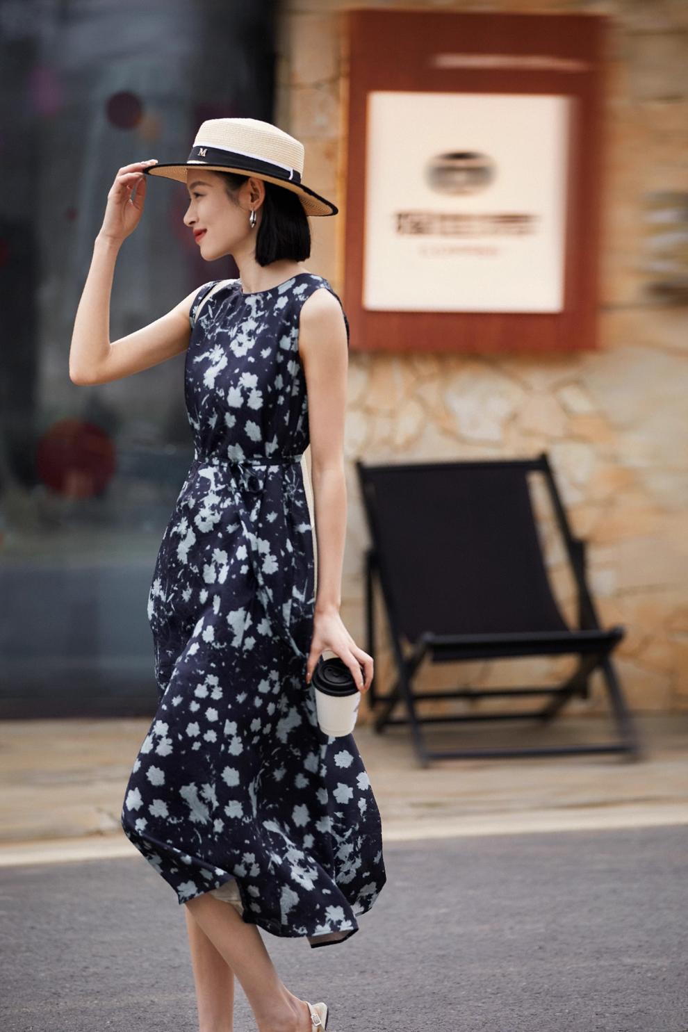 Printed Waist-Cinching Sleeveless Dress For Women