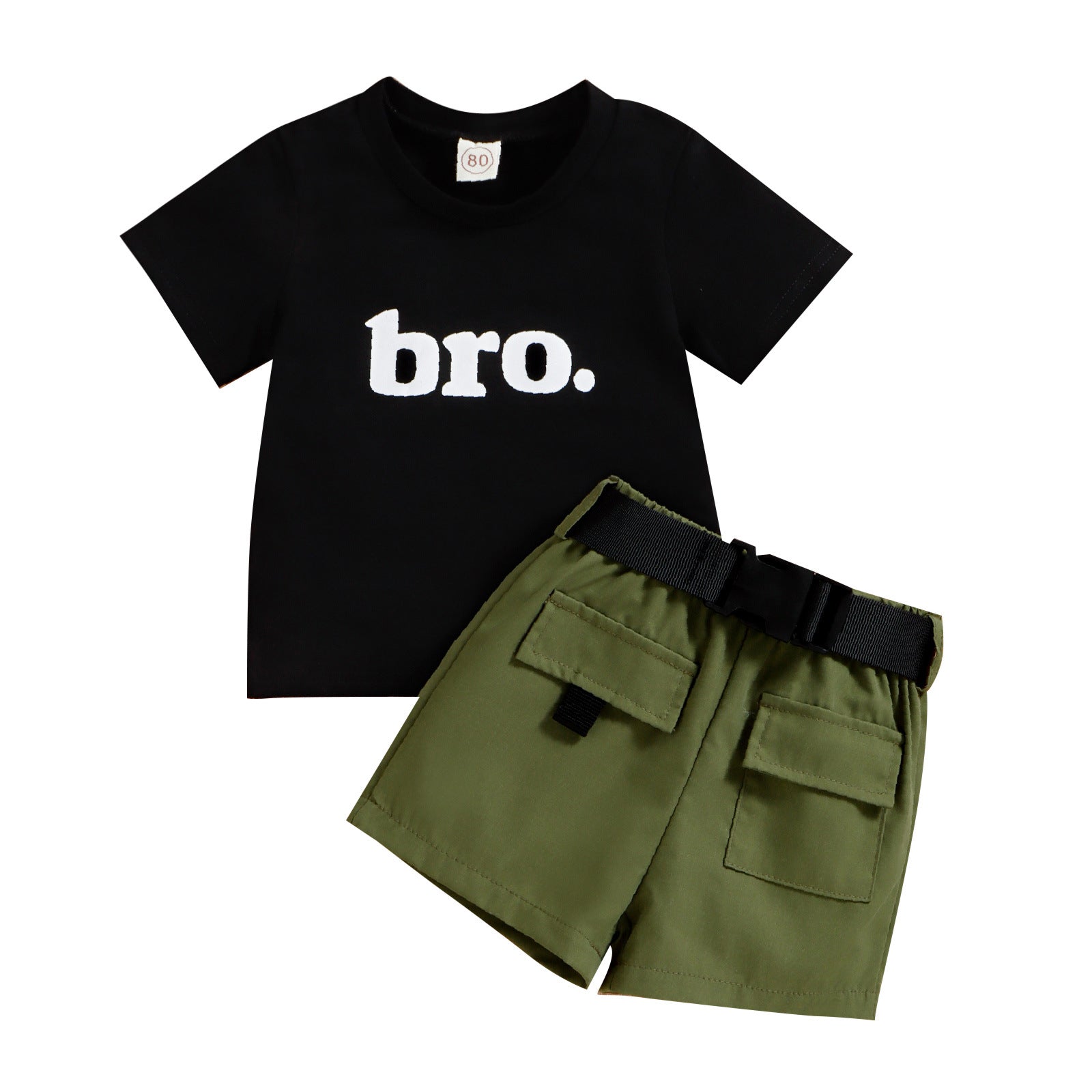 Round Neck Letter Short Sleeve Top Cargo Boys Suit
