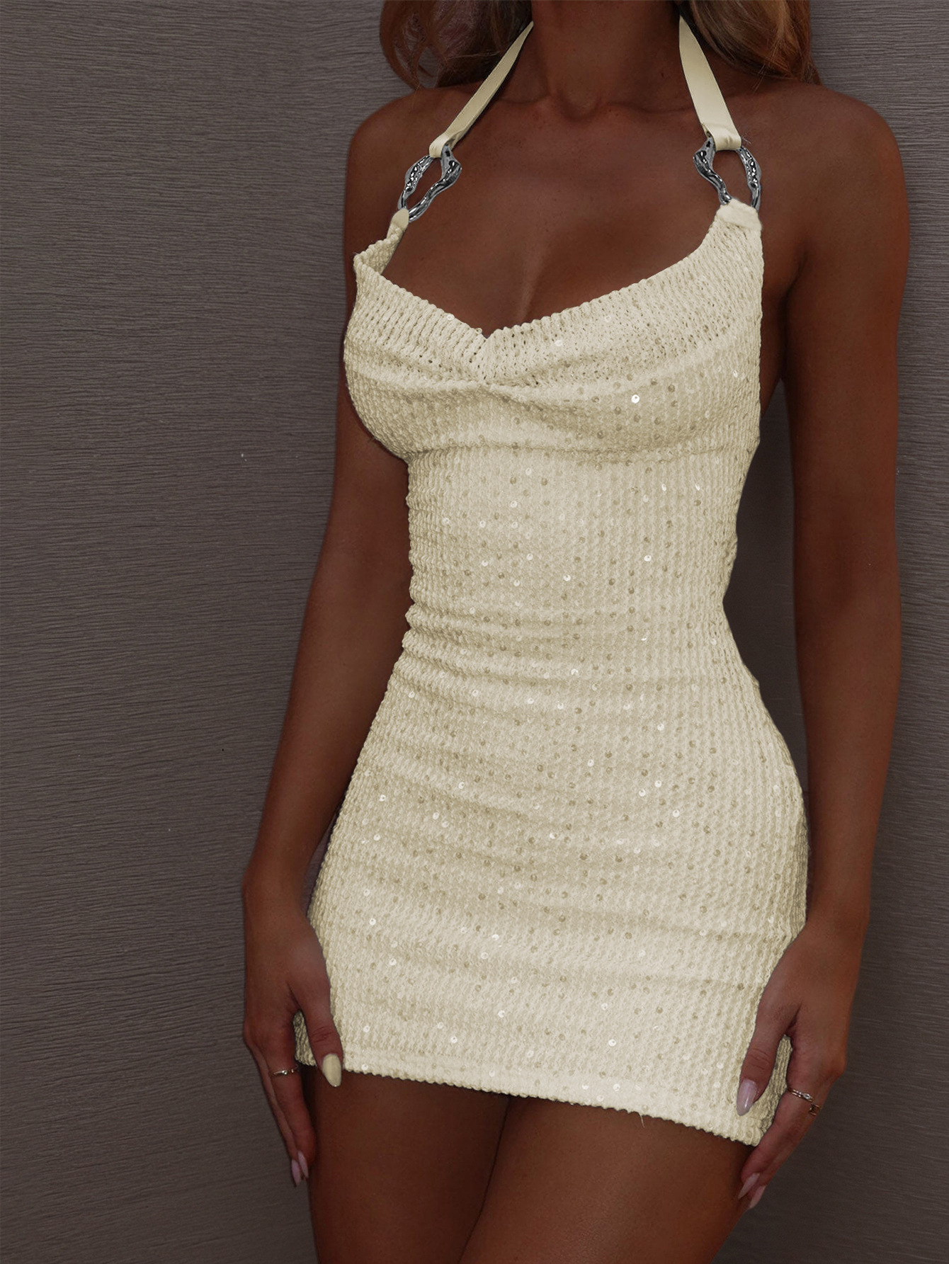 Style: Halter neck, sleeveless, high waist, bodycon