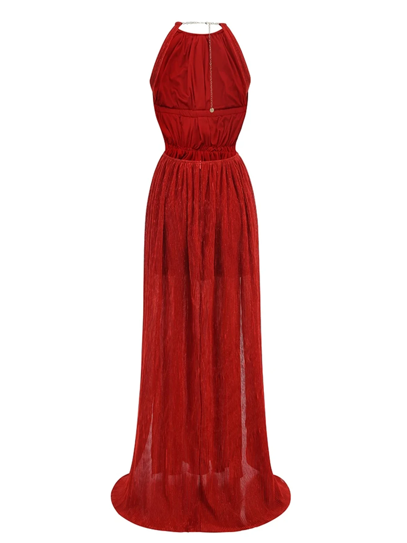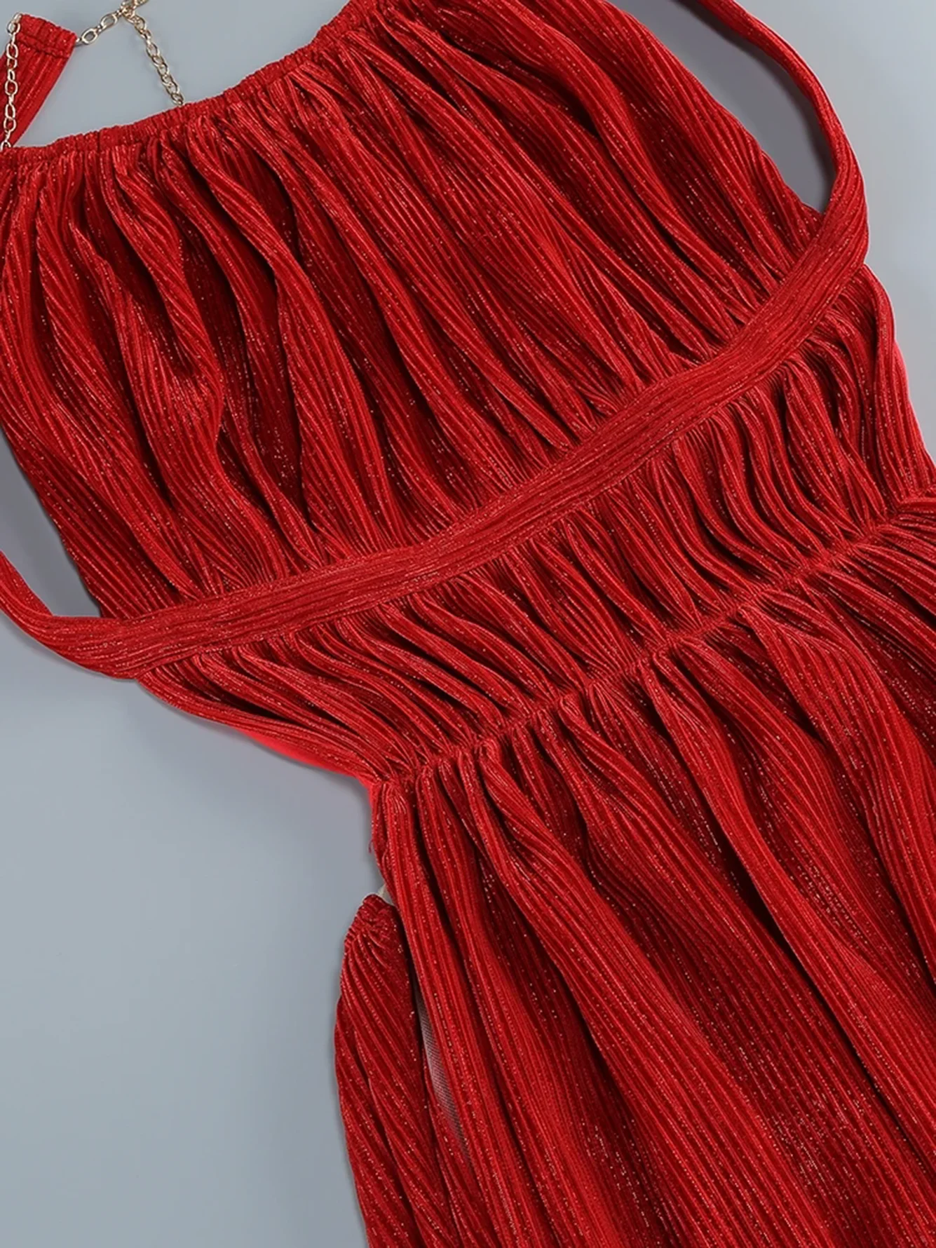 Slant shoulder pleated casual dress red long women's dress