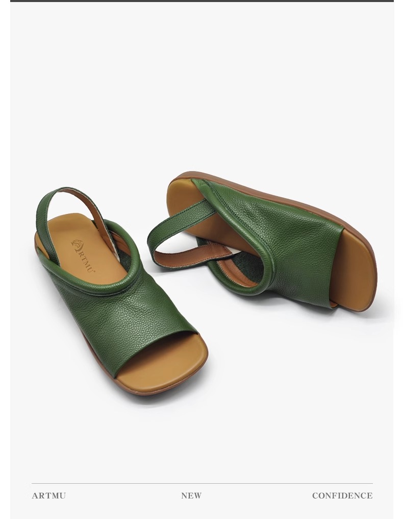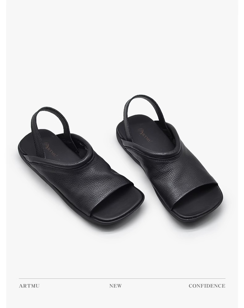 Soft-leather Square-toe Flat-heeled Womens Open-toe Roman-style All-match Beach Sandals For Outdoor Wear