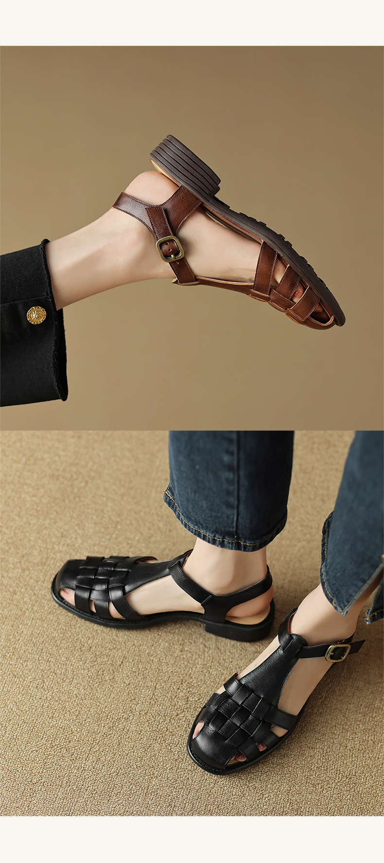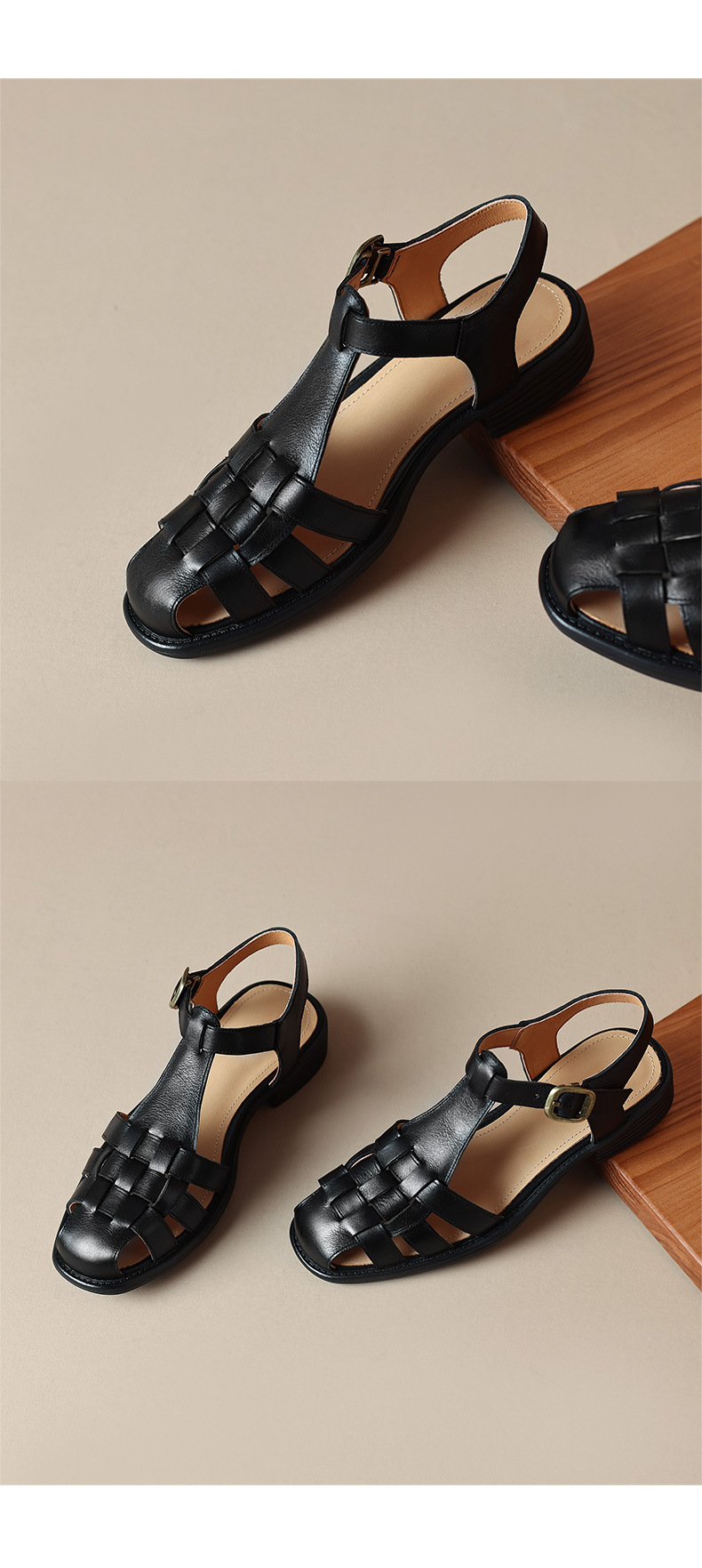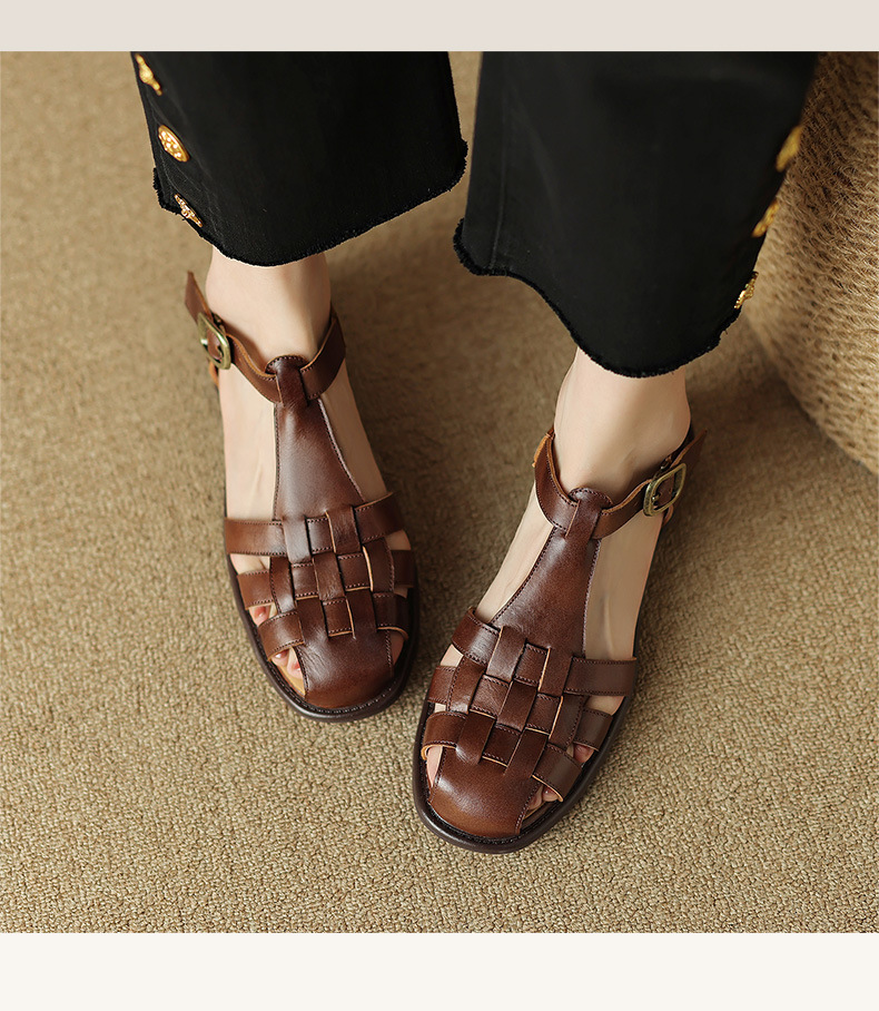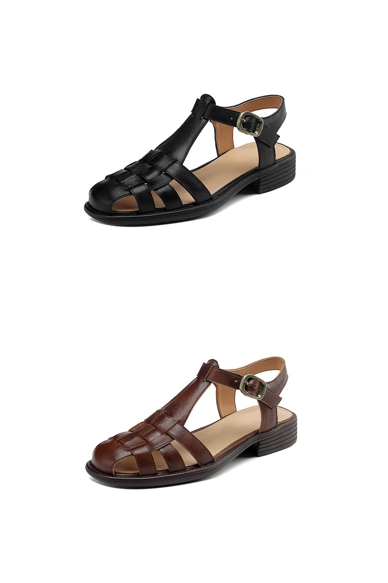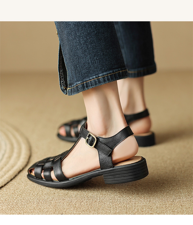 Spring Womens Low-heeled Closed-toe Open-heel Sandals