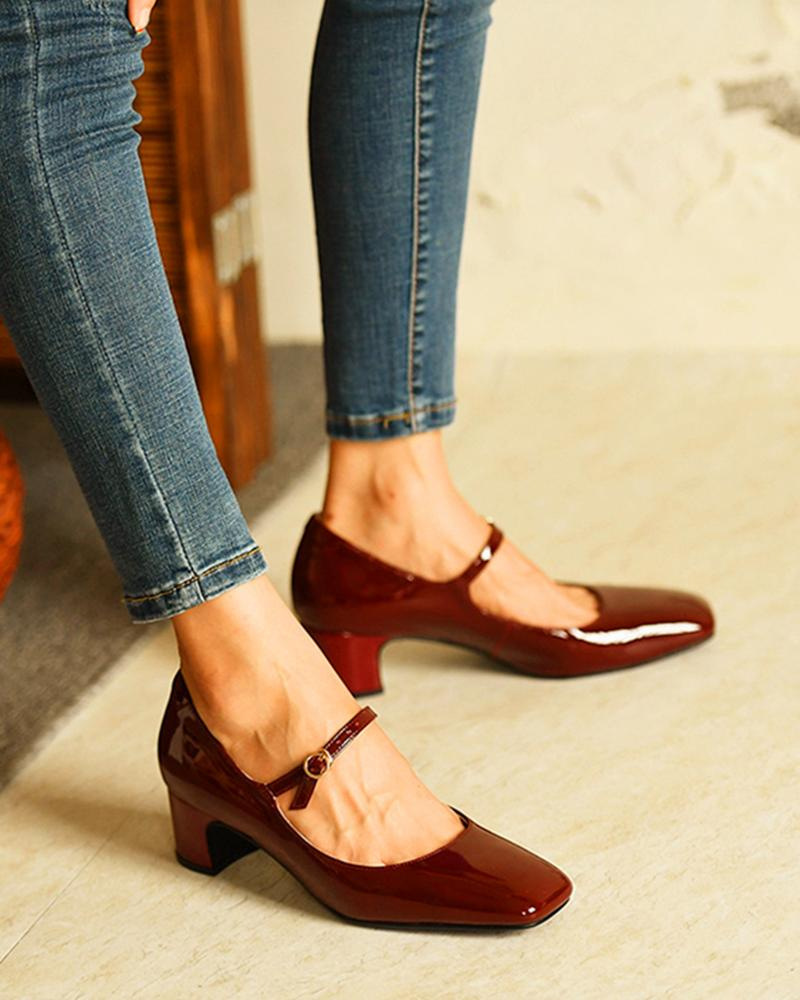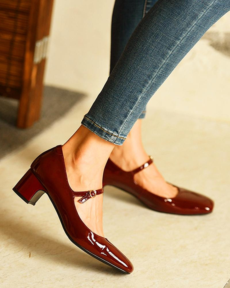 Stylish Mid-heel Plus-size Square-toe Pumps