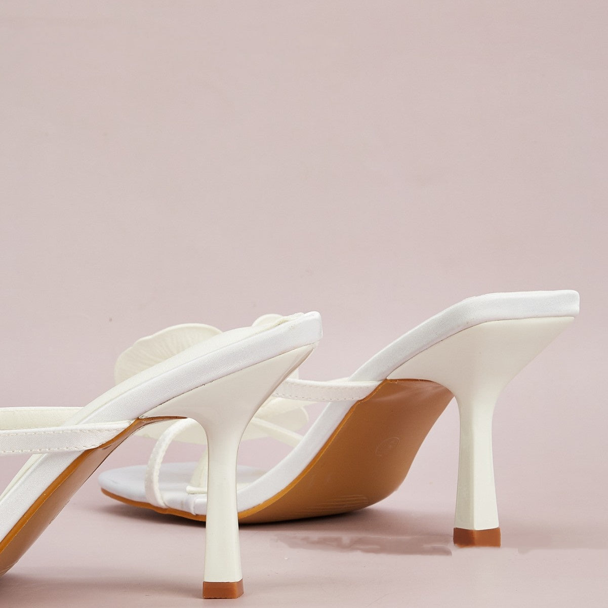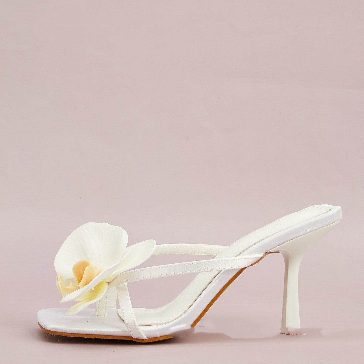 White Flower Decorative Flip-toe Square Toe High Heel Sandals