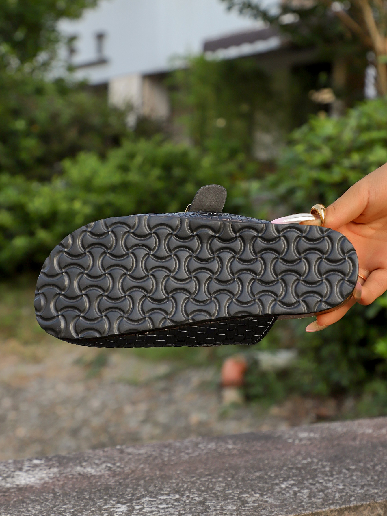 Womens Cork-toe Patterned Leather Belt Buckle Half-slipper
