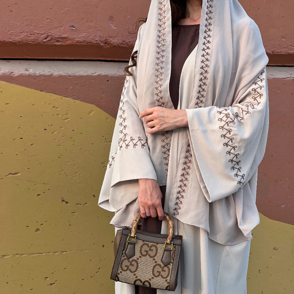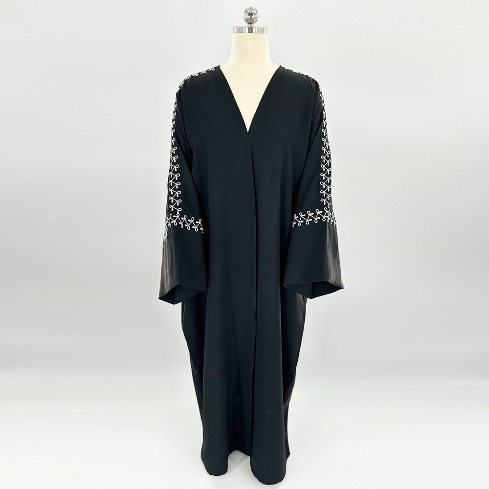 Women's Embroidered Abaya Dress with Bat Sleeves