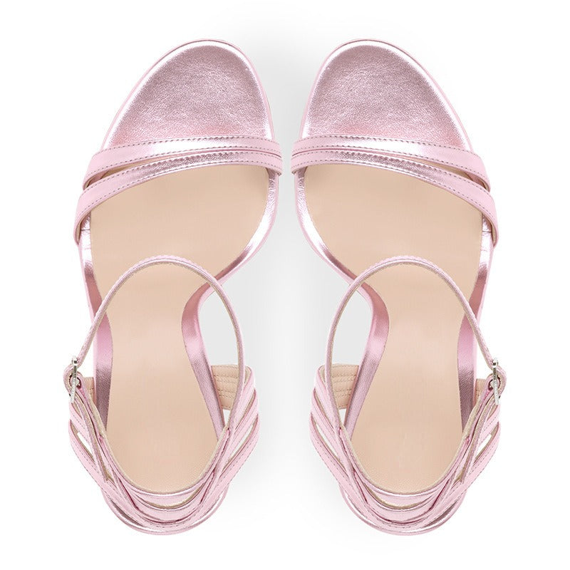 Womens Pink Slim High Heeled Sandals, Large Pointed Open Toe