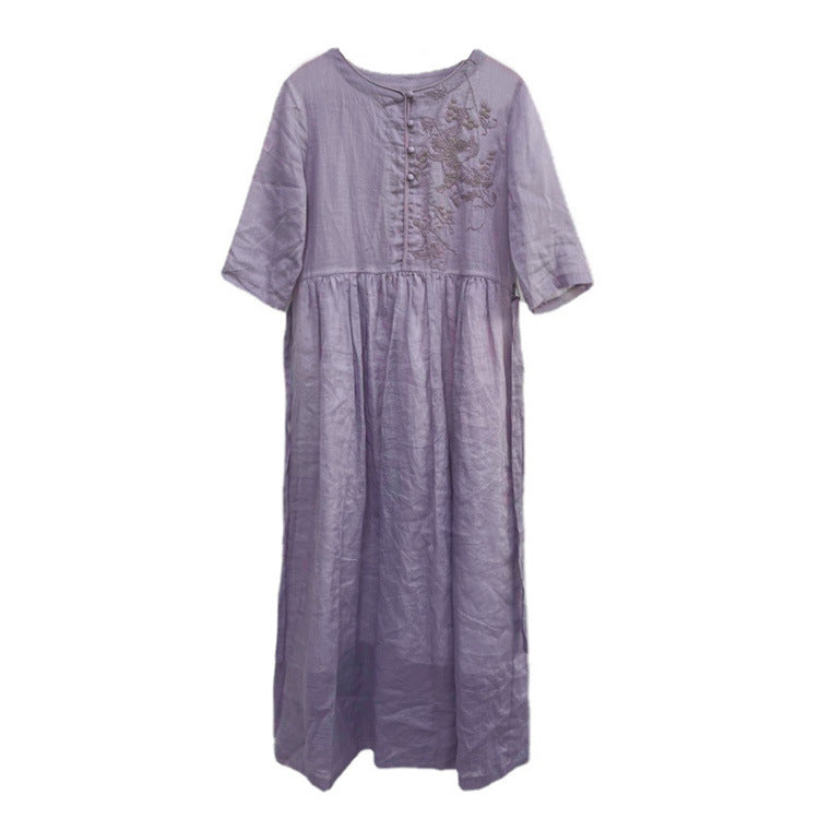 Women's Summer Embroidered Ramie Dress